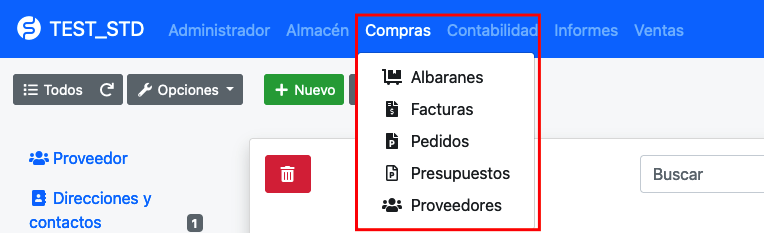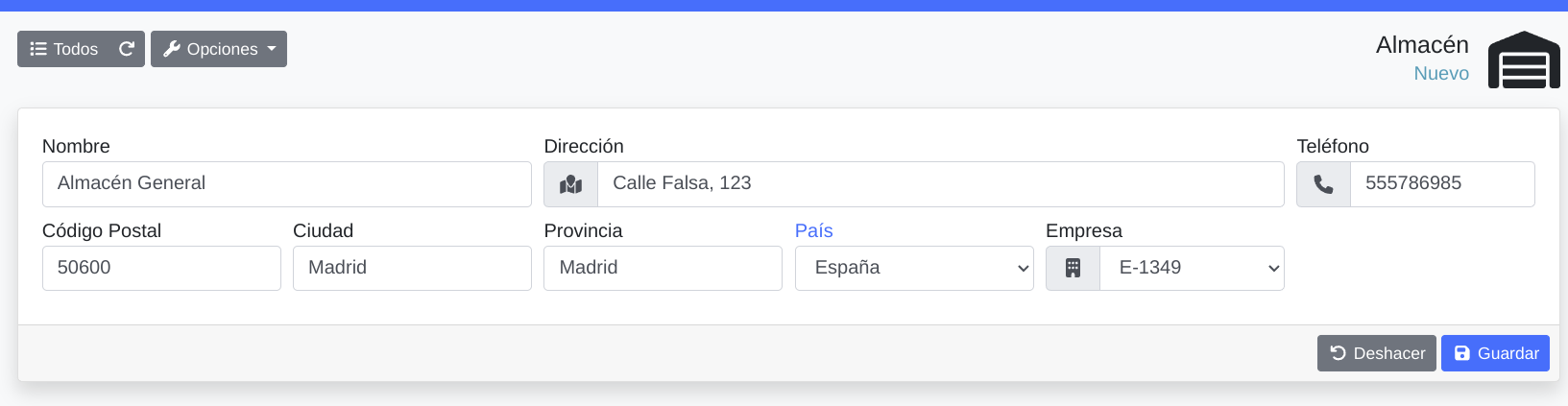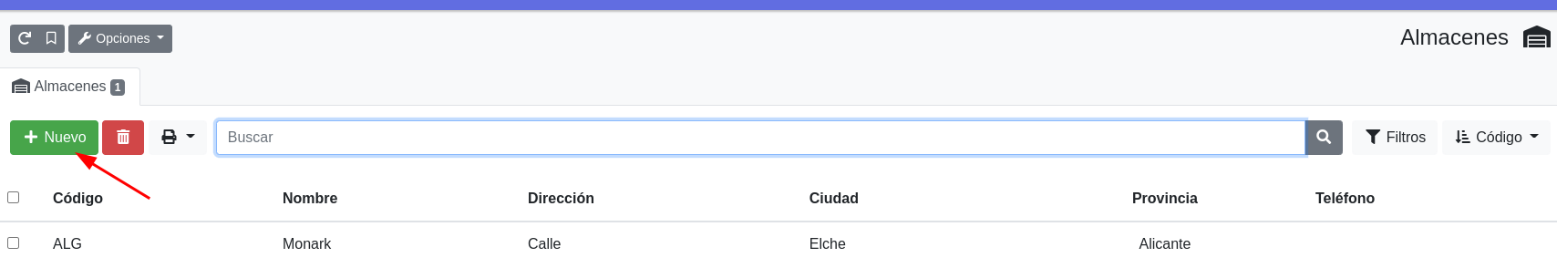 Desde el menú almacén puede ver los distintos almacenes, porque puede añadir todos los almacenes que necesite. Tenga en cuenta que un almacén puede ser incluso una tienda, así que si su negocio tiene varias tiendas, puede crear un almacén para cada tienda en lugar de una empresa.