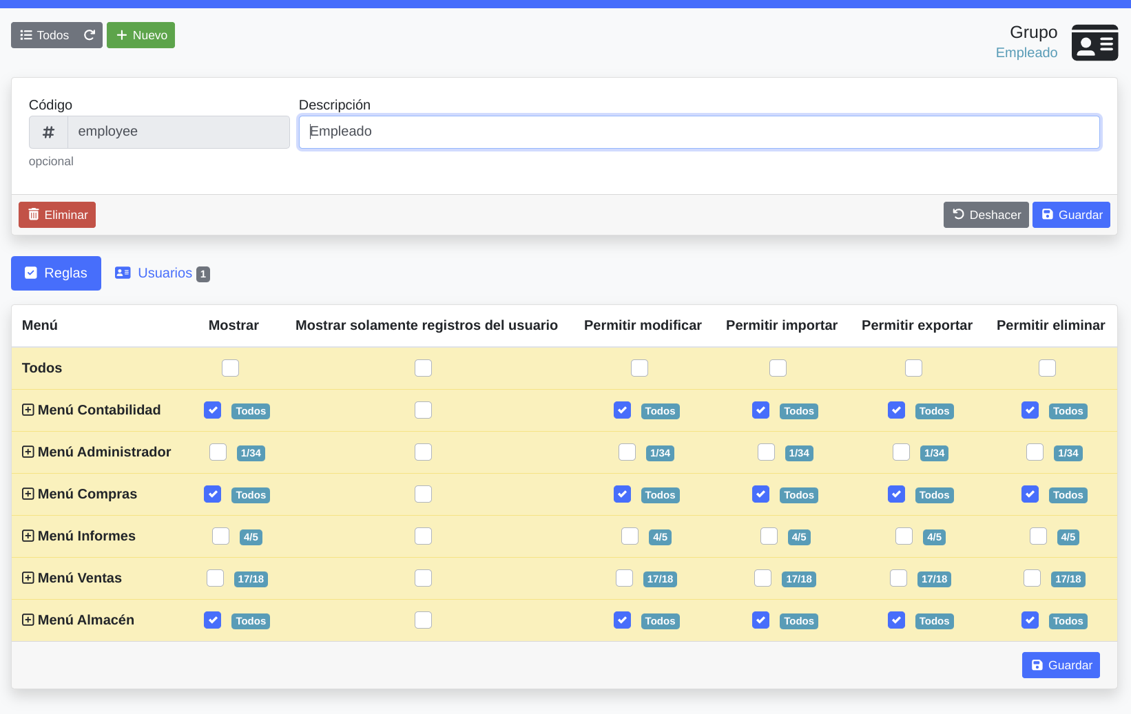 Para acceder a la aplicación se requiere nombre de usuario y contraseña. Usted podrá crear tantos usuarios como desee, además de grupos diferentes para restringir acceso a ciertas partes. Esto es esencial si tiene empleados.